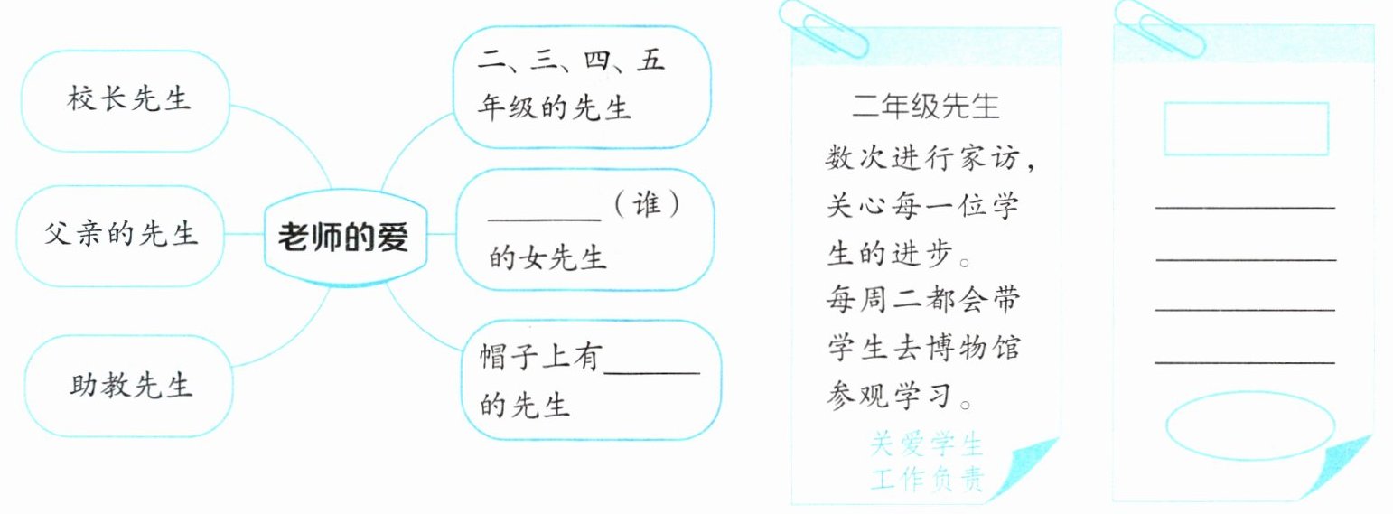 1. 根据《爱的教育》,把老师的“爱之卡”和人物记录卡补充完整。