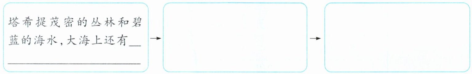 塔希提茂密的丛林和碧蓝的海水,大海上还有______→______→______