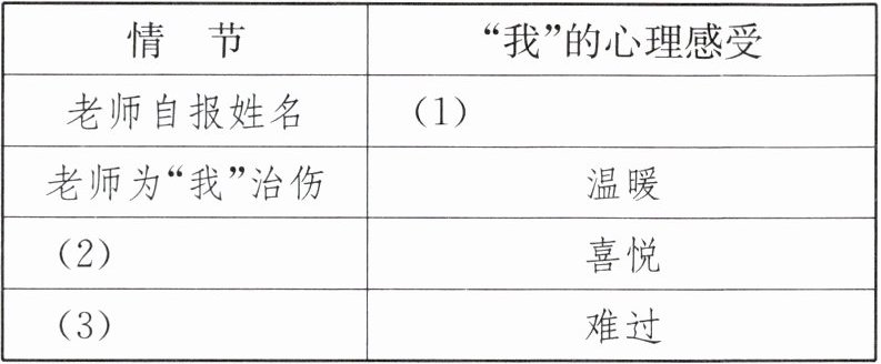 8."牵""翻""蘸""涂抹"等一系列动词,细致地写出了老师为"我"处理伤口的过程,表现了老师对"我"的关爱,也写出了"我"内心感受到的温暖。[解析]"牵""翻""蘸""涂抹"等一系列动词,细致地描绘了老师为"我"处理伤口的全过程。这一系列动作不仅展现了老师对学生的细心照料,也让"我"感受到了深深的温暖与关怀,使文章更加生动、形象,情感表达更加真挚感人。