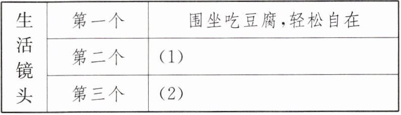 7. 本文运用蒙太奇的方法,将三个不同时空的生活镜头揉在一起,使画面中的景与人相映成趣、层次分明,营造“冬天里的春天”的意境和氛围。请你填写表格,完成题目。