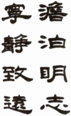 4. 跨学科 鉴赏书法 很多家庭喜欢将“淡泊明志,宁静致远”作为自己的家训。请欣赏右边这幅书法作品,下列对这幅书法作品的赏析中,正确的一项是( )