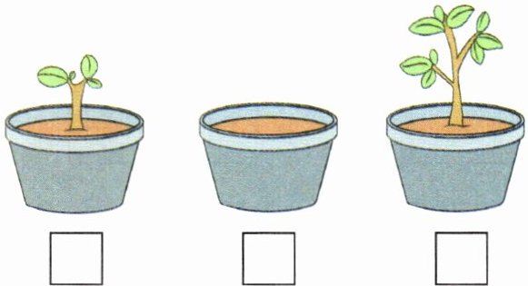 2 1 3 [提示]从左往右三个花盆,中间的花盆刚放入种子,左边的花盆种子发芽长出小苗,右边的花盆小苗长高了。