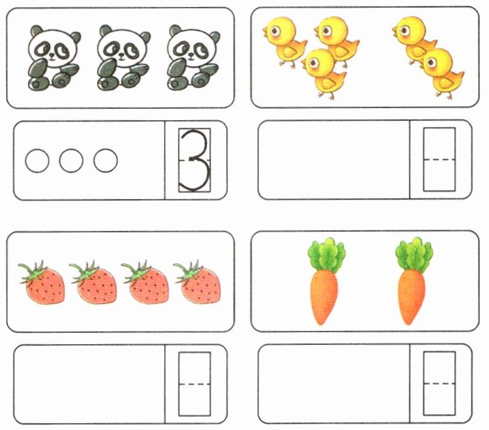 4 3 5 2 5 2【提示】数一数题图上物体的个数,有几个就写几。