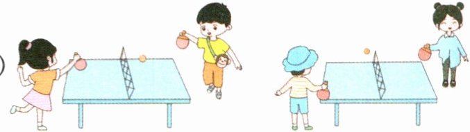 (1)看图数一数,图中有 2 张桌子,4 个人。