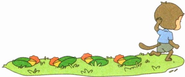 1 4 0 【提示】看图数一数,有一只小猴,写“1”,扳了4 根玉米,都丢在地上,写“4”,手里一个都没有了,写“0”。