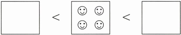 【提示】因为3 < 4 < 5,所以在左边方框里画3个☺,右边方框里画5个☺,答案不唯一。