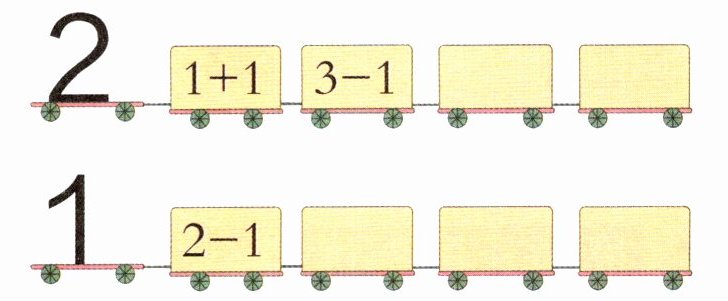 [提示]根据加法和减法的计算方法,写出得数是2或1的算式即可。