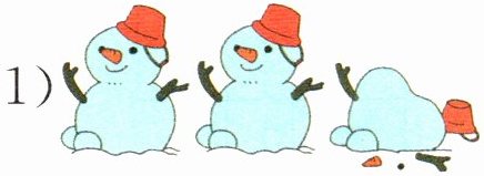 (1)图中有3个雪人,融化了一个,所以3-1=2符合情境;