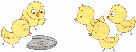 3 1 2 [提示]左边有2只小鸡,右边有3只小鸡,合起来是2+3=5(只)小鸡;原来有3个工具箱,拿走1个工具箱,剩下2个工具箱,列式为3-1=2。