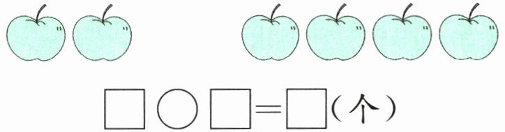 答案不唯一,如:妈妈有2个苹果,爸爸有4个苹果,一共有几个苹果? 2 + 4 = 6(个)