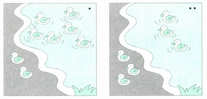 2. 河里原来有8只鸭子,第一次游走了( )只,第二次游走了( )只,还剩几只?