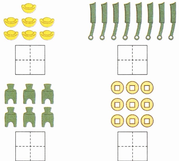 1. 传统文化 古币 下面是我国古代不同时期货币的样式,看图写数。