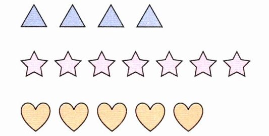 [提示]通过连线法把▲和★,★和♥,▲和♥连起来,就发现谁多谁少了。