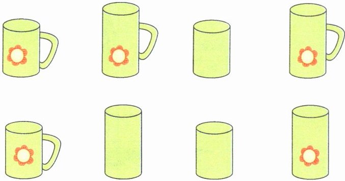 有杯把的杯子:第一行第1、2、4个,第二行第1个;