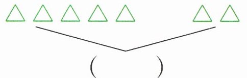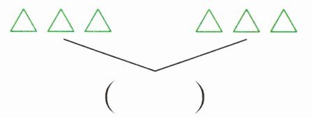 【提示】看图分别数出△的个数,上面左右两边各有3个△,一共有6个,列式为3+3=6;下面左边有5个,右边有2个,一共有7个,列式为5+2=7或2+5=7。