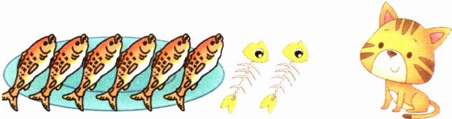 8-2=6 [提示]用盘子里原来有的条数减去小猫吃了的条数就是剩下的条数。