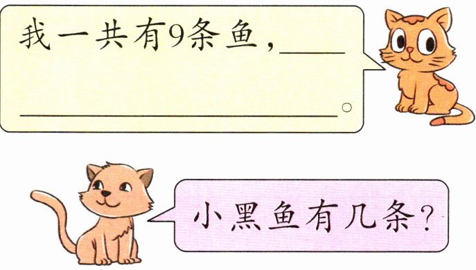 [提示]列式为9-2=7且最终问题是小黑鱼有几条。所以7应对应小黑鱼的数量,2对应另一种鱼的数量。