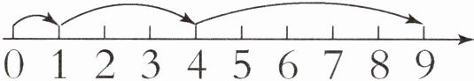 (1)1+3+5=9 【提示】从数线图上可知,第一次跳1格,第二次跳3格,第三次跳5格,一共跳了1+3+5=9(格)。