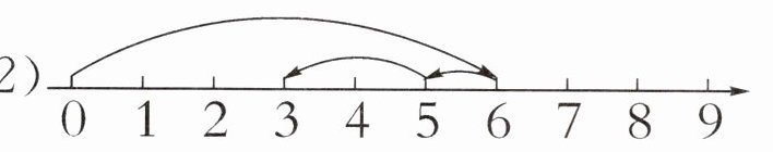 (2)6-1-2=3 【提示】从数线图上可知,第一次一共跳6格,然后回头跳,先跳1格,再跳2格,还有6-1-2=3(格)。