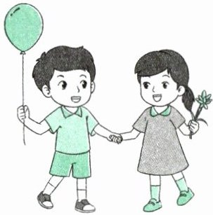 5. 小男孩的(左 右)手拿着气球,小女孩的(左 右)手拿着花。(圈一圈)