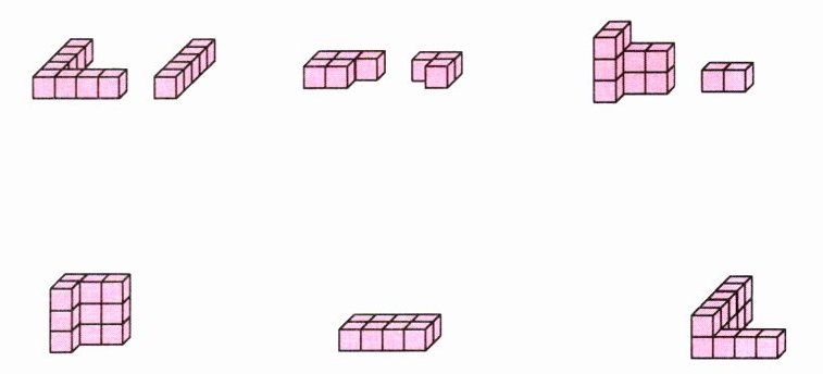 4. 每组小正方体分别可以组成什么?连一连。