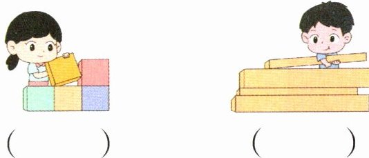 3. 新情境 趣味数学 小朋友们在玩搭积木游戏。要把积木搭高,在最难搭的一组下面的( )里画“√”。