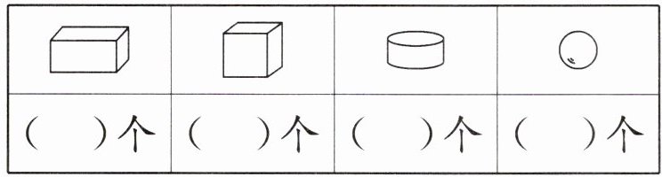 [提示]先把各种立体图形分类,同类的图形一起数。