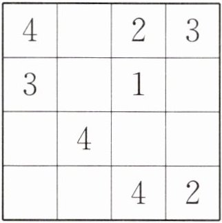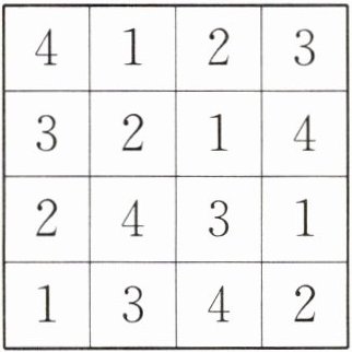 例 小朋友,你听说过“数独”吗?“数独”是一种推理游戏,根据宫格给出的数字,推理宫格中余下的数字。在下图的每个方格中填入1个数字,使得每一行、每一列都有数字1、2、3、4且不重复。