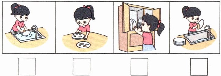 本题可根据生活常识,结合所给图片,用学过的数表示小红洗碗的先后顺序。