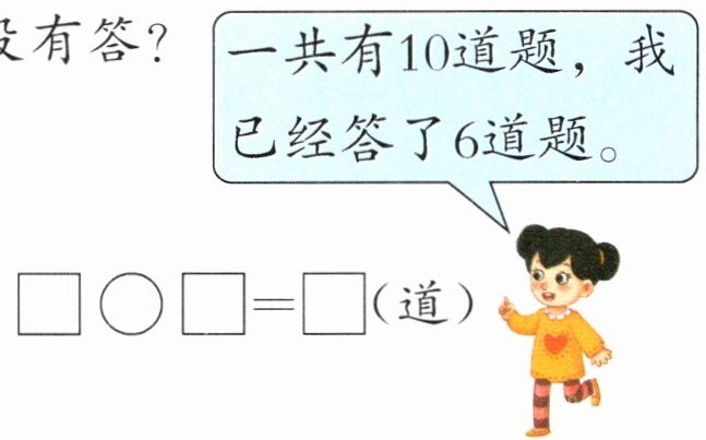 10−6=4 [提示]用一共有的10道题减去已经答了的题目,就是还剩下没有答的题目。