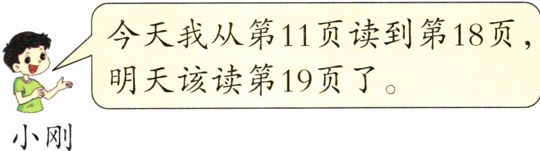 18-11+1=8(页) 【提示】小刚今天从第11页读到第18页,要想求出他今天读了几页,就用结束的页码减去开始的页码,再加上开始的这一页。