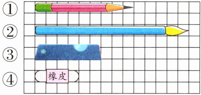 【提示】先数一数每种物品的长度占多少格,就知道它们的长短顺序了。