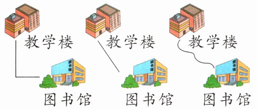 4. 从教学楼到图书馆哪条路线最短?在□里画“√”。