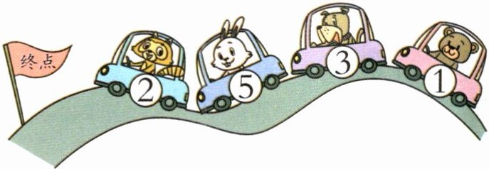 (1)如果按照现在的顺序,那么( )号赛车获得第一名,( )号赛车获得第二名,( )号赛车获得第三名。