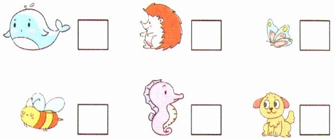 3. 天上飞的在□里画“√”,水里游的画“○”,地上跑的画“△”。
