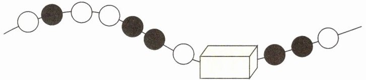 根据图意可知,这串珠子的规律是1白1黑、2白2黑、3白3黑……已知盒子的左边是1白,右边是2黑,则盒子里面有2白1黑。