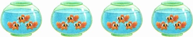 (2)12 4 3 12÷4=3 [提示]把12条金鱼平均分成4份,每份3条,即每个鱼缸里放3条。