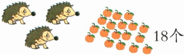 6 18÷3=6 [提示]把18个苹果平均分给3只小刺猬,每只小刺猬分6个。