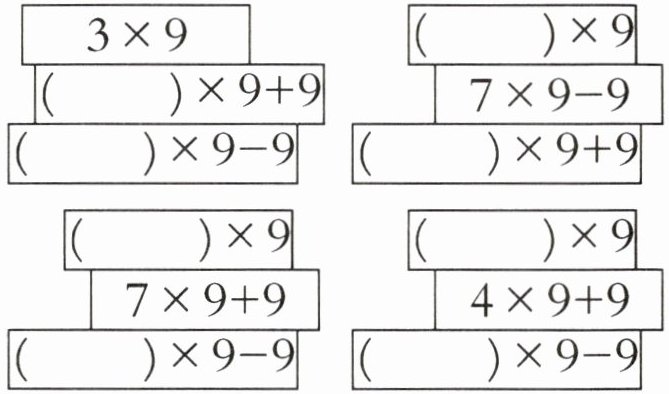 2 4 6 5 8 9 5 6 【提示】根据9的乘法口诀之间的联系填空,如2个9加1个9等于3个9,或者4个9减去1个9也等于3个9。