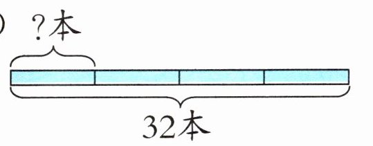 (2)32÷4=8(本) 【提示】一共有32本,平均分成4份,要求每份多少本,用除法计算,列式是32÷4=8(本)。