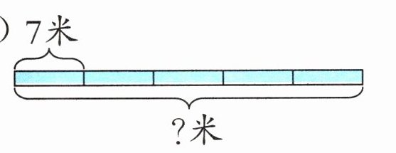 (1)7×5=35(米) 【提示】每份7米,全长一共有5份,要求全长多少米,用乘法计算,列式是7×5=35(米)。