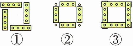 【提示】第①幅图,分成4组,每组4个⚪,一共有4×4=16(个)⚪;第②幅图,分成4组,每组3个⚪,多出4个⚪,一共有4×3+4=16(个)⚪;第③幅图,分成4组,每组5个⚪,有4个是重复的,所以一共有4×5-4=16(个)⚪。