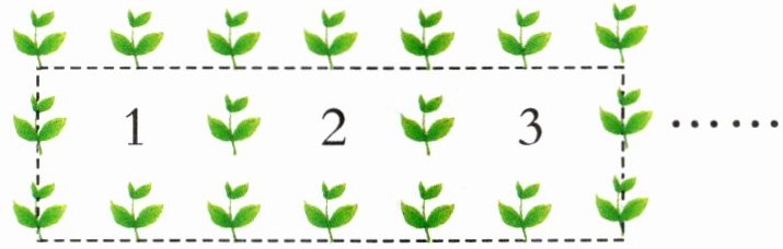 43 【提示】摆1个正方形用了$3+5× 1=8$(棵)种苗,摆2个正方形用了$3+5× 2=13$(棵)种苗,摆3个正方形用了$3+5× 3=18$(棵)种苗,所以,摆8个正方形用了$3+5× 8=43$(棵)种苗。