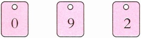 (2)920、290 [提示]先将卡片上的数字组合成不同的三位数,再按要求填空。