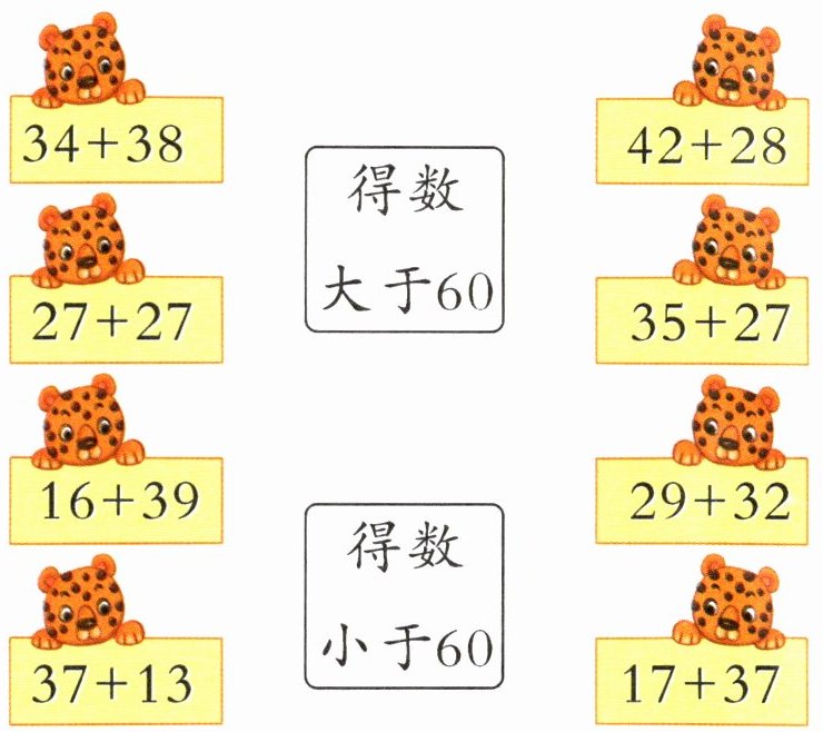 [提示]先算出每个算式的得数,再判断是大于60还是小于60。