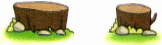 6. 新情境 年轮 人有年龄,树也有年龄,通常树桩上的一圈年轮代表一岁。图中左边的树有36岁,比右边的树大18岁。右边的树多少岁?两棵树共多少岁?