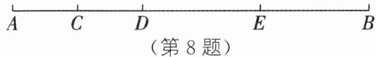 8. 如图,D,E为线段AB上两点,AB= 20,C为AD的中点,则下列说法中,正确的是 (