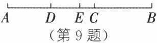 9. 如图,C为线段AB上一点,AC= 18,CB= 2/3AC,D,E分别为线段AC,AB的中点,则DE的长为