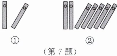 7. 新考向·数学文化 如图,若将算筹(小棍形状的记数工具)正放表示正数,斜放表示负数,则图①中的算筹表示$(+1)+(-1)$,据此推算图②中所得的数值为 (