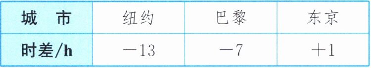 14. 新情境·日常生活 下表列出了三个外国城市与北京的时差(带正号的数表示同一时刻比北京时间早,带负号的数表示同一时刻比北京时间晚).例如:当北京时间是7月28日凌晨3:00时,东京时间是7月28日凌晨4:00.